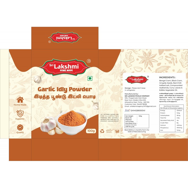 தென்னிந்திய காலை உணவுக்கு சுவையூட்டும் இட்லி பொடி, வறுத்த பருப்பு, மசாலா மற்றும் மணமிரக்கும் மூலிகைகளுடன் தயாரிக்கப்பட்டது. இட்லி அல்லது தோசைக்கு சிறந்த துணை.