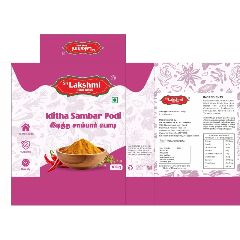 Make authentic South Indian sambar easily with our Homemade Sambar Podi, made from roasted lentils, tamarind, and spices. Aromatic and flavorful, it brings restaurant-quality taste to your home.உலர்த்..