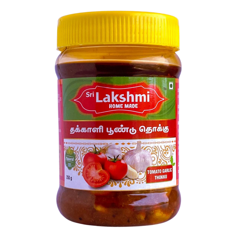 புதிய தக்காளி, பூண்டு மற்றும் மணமிக்க மசாலா கொண்டு தயாரிக்கப்பட்ட இந்த தொக்கு, புளிப்பு மற்றும் கார சுவையுடன் சுவையான அனுபவத்தை தருகிறது. சாதம், தோசை, இட்லி, சப்பாத்தி மற்றும் தயிர் சாதம் உடன் சுவைக்க சிறந்தது.